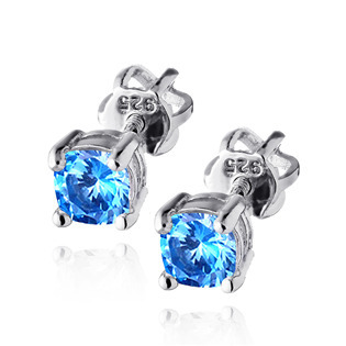 NB-3759-Q Stříbrné náušnice s tyrkysově modrými zirkony