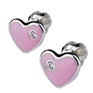 ZB53315-PS Stříbrné náušnice šroubovací - srdíčka růžová - srdce