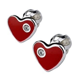 ZB53315-RS Stříbrné náušnice šroubovací - srdíčka červená - srdce