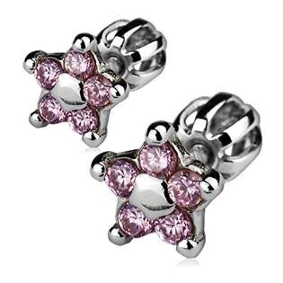 ZB3539-P Stříbrné náušnice šroubovací - kytičky, světle růžové zirkony - květiny