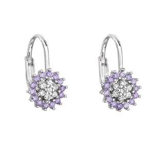 EG2202-VC Stříbrné náušnice s čirými a fialovými zirkony - květiny