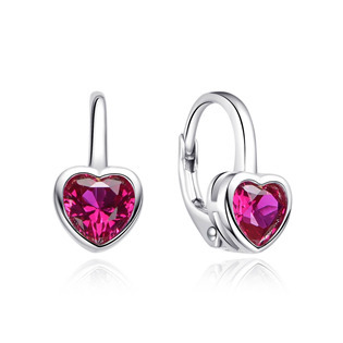 DN-0100-F Stříbrné dívčí náušnice srdíčka tmavě růžová - dětské