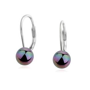 Stříbrné náušnice dekorované 6 mm syntetickými duhovými perlami