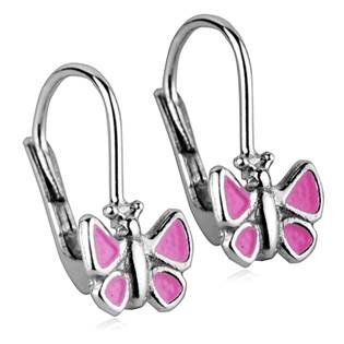 ZB53318 Dívčí stříbrné náušnice - růžoví motýlci