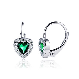 NB-3158 Stříbrné náušnice srdíčka se zelenými zirkony - srdce