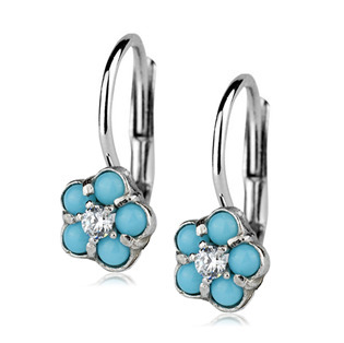 ZB53528 Dívčí stříbrné náušnice - kytičky tyrkysové - květiny
