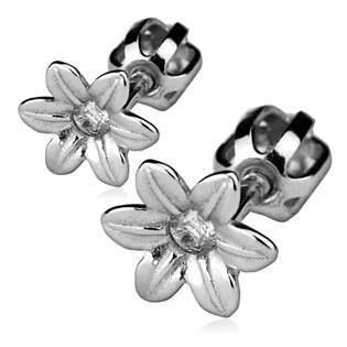 ZB5349-C Stříbrné náušnice šroubovací - kytičky, čiré zirkony - květiny