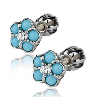ZB53528-S Stříbrné náušnice šroubovací - kytičky tyrkysové - květiny