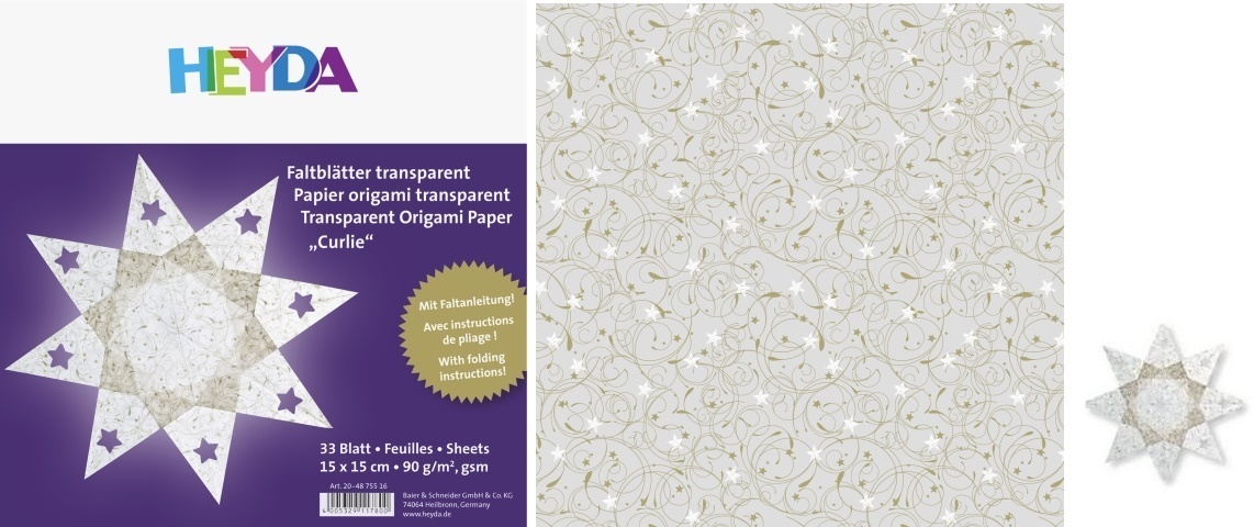 33ks listů origami 15x15cm, 90g/m2 - bílý/zlatý. Balení obsahuje návod na výrobu hvězdy. Origami je stará japonská technika skládání papíru do jednoduchých tvarů, které zvládnou i menší děti. Papíry jsou vhodné i pro další výtvarnou činnost: výroba dekorací, přání a barevných detailů. weiter lesen