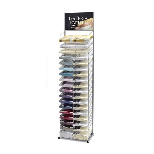 Prázdný stojan pro vystavení papírů a diplomů ;Stabilní konstrukce s protikluzovými nožkami ;36 (2x18) přihrádek pro formát A4 ;Rozměr přihrádky: 22 x 31 cm (výška 10 cm) ;Kapacita přihrádky 7 balení papíru A4 nebo 5 balení diplomů ;Barva: stříbrnošedá ;Rozměry: 48,5 x 33 x 195...