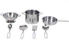Kompletny zestaw do zabawy w małego kucharza, składający się z 7 elementów wykonanych z wysokiej jakości metalu. Ta realistyczna imitacja prawdziwych naczyń i przyborów kuchennych zapewni godziny kreatywnej zabawy każdemu dziecku. Zestaw zawiera solidny garnek z uchwytami, praktyczną patelnię z...