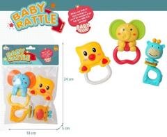 Odkryj świat wesołej zabawy i nauki z tym uroczym zestawem grzechotek niemowlęcych. W skład kompletu wchodzą trzy różnorodne grzechotki z motywami słonika kaczuszki i żyrafki które natychmiast przyciągną uwagę Twojego dziecka. Intensywne barwy i przyjazne kształty stymulują wzrok a delikatny...