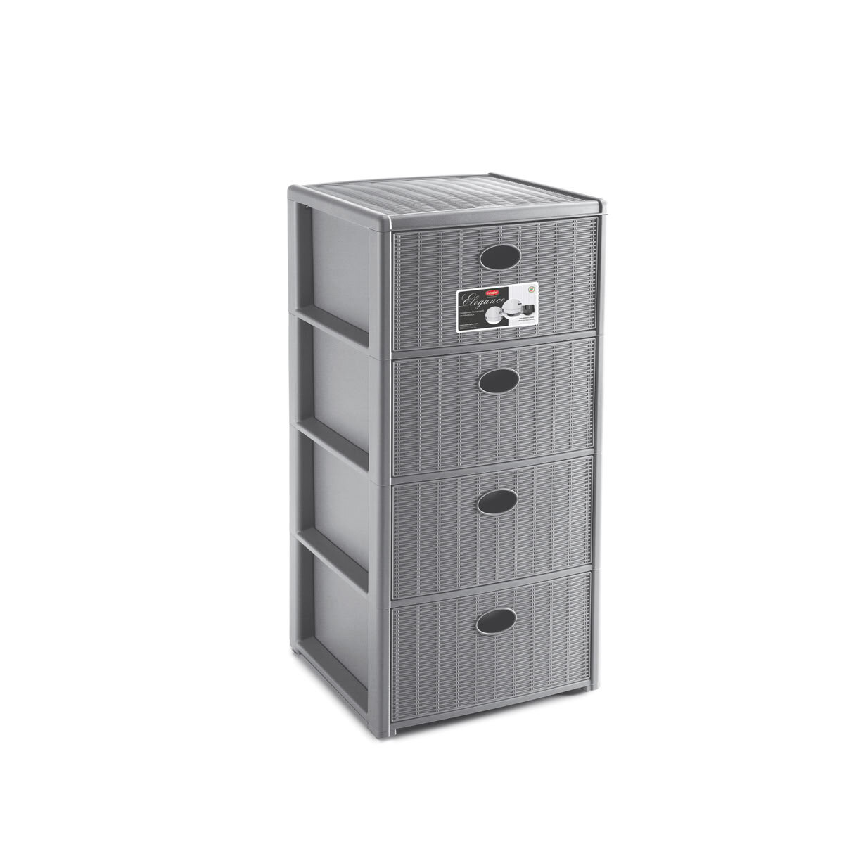Úložný plastový regál Elegance, 4 zásuvky, šedý