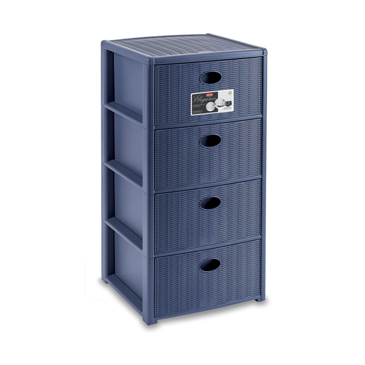 Úložný plastový regál Elegance, 4 zásuvky, modrý