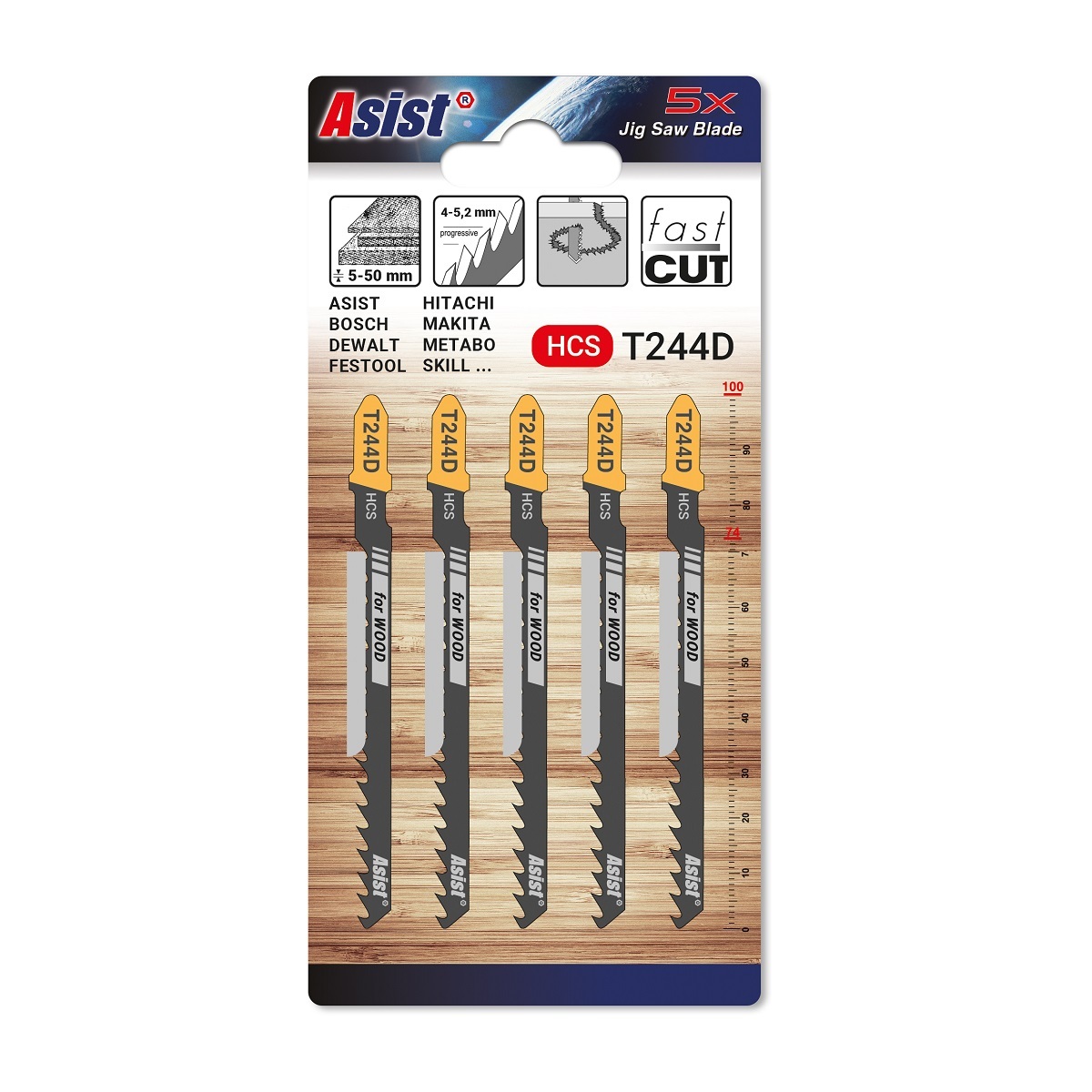 Pilové listy k přímočaré pile na dřevo – 5 ks ASIST 05-5104Universální sada pilových listů z HCS (uhlíková ocel) pro rychlé a přesné křivkové řezy do měkkého dřeva a dřevěných desek. Díky typu T244D se snadno vedou v oblouku, zvládnou agilní postup řezu a při správném nastavení pily poskytují...