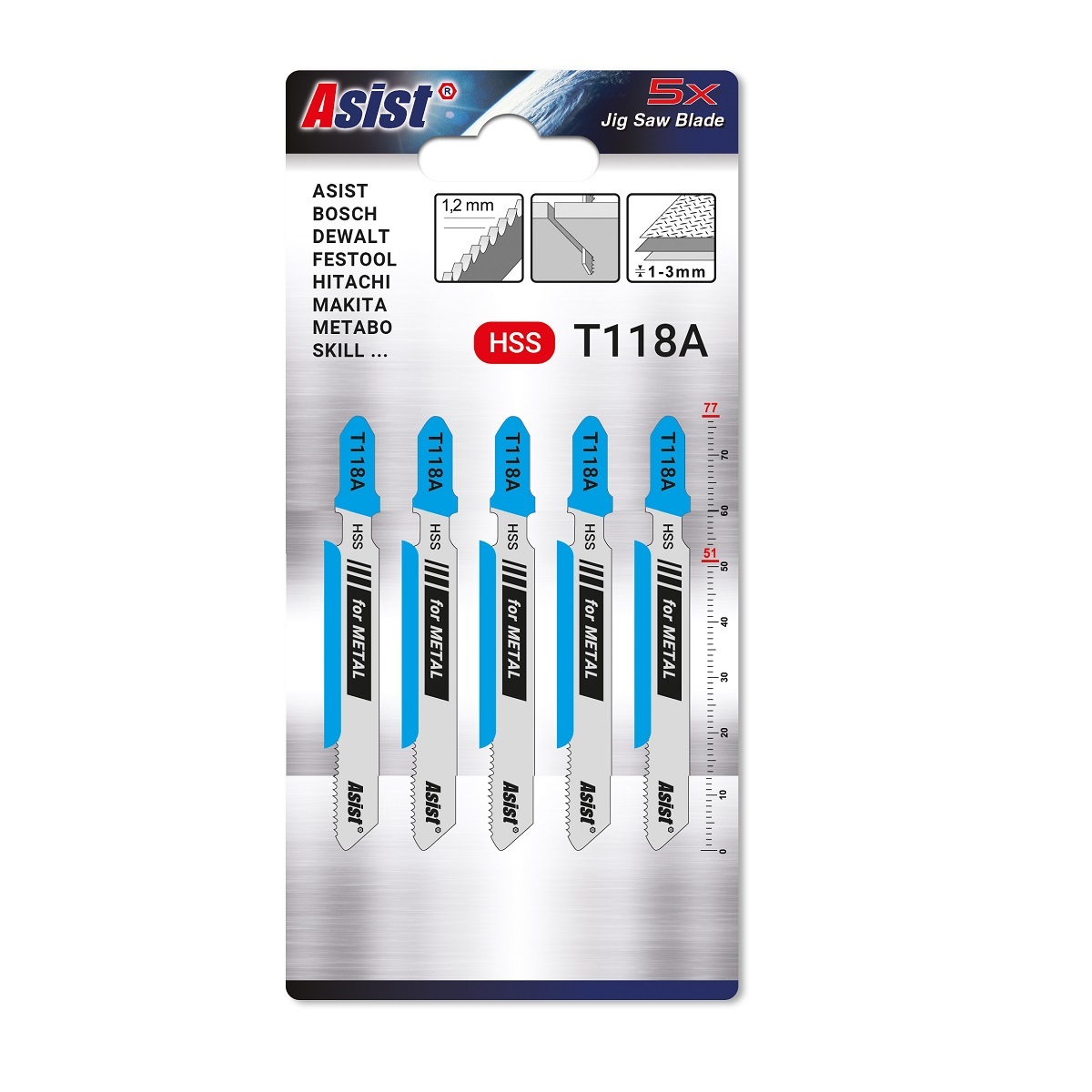 Pilové listy k přímočaré pile na kov - 5ks ASIST 05-5203