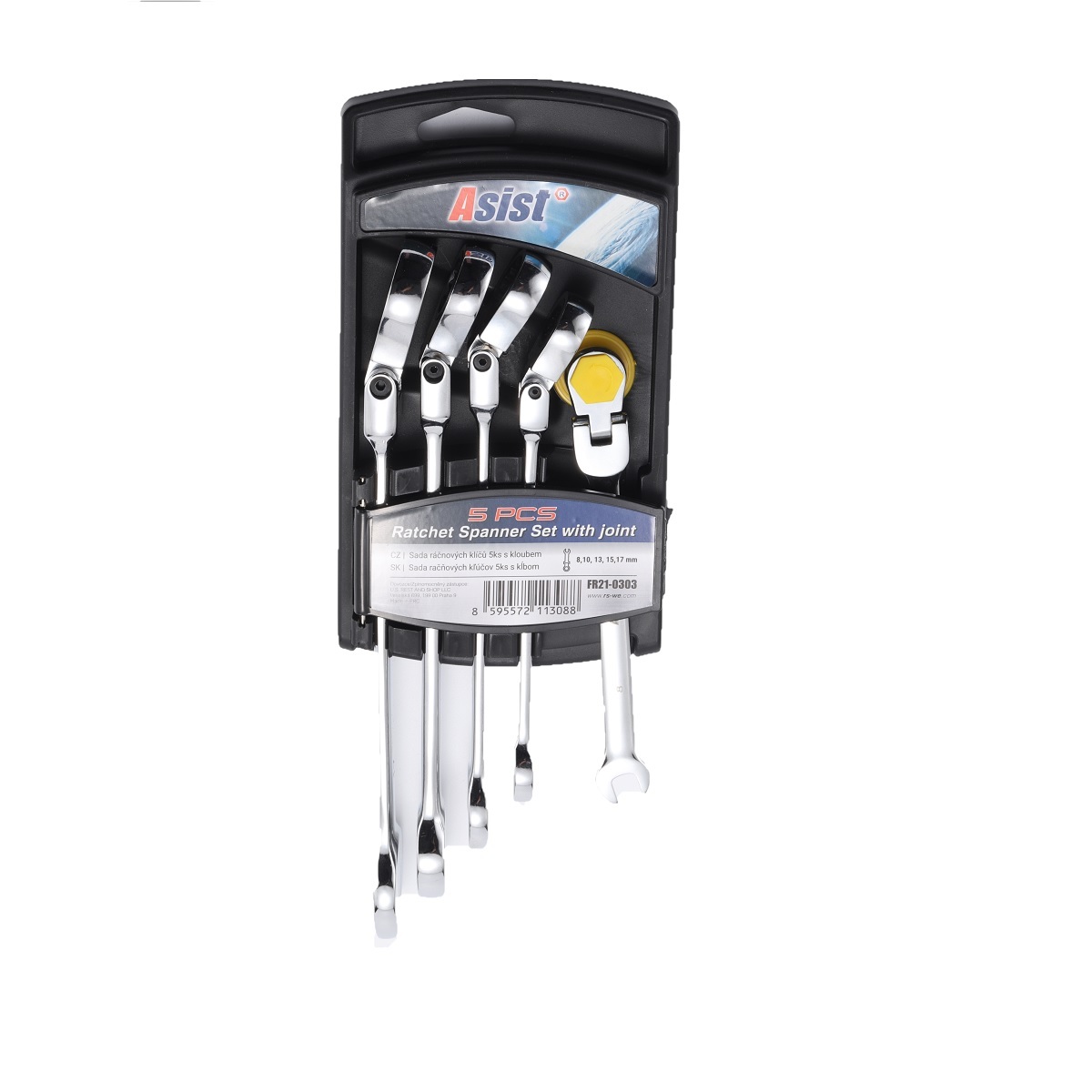 Sada ráčnových klíčů 5 ks s kloubem – kompaktní a odolná sada pro rychlé utahování i povolování v těsných místech bez neustálého sundávání klíče z matice. Ideální pro servis, montáže i domácí dílnu.