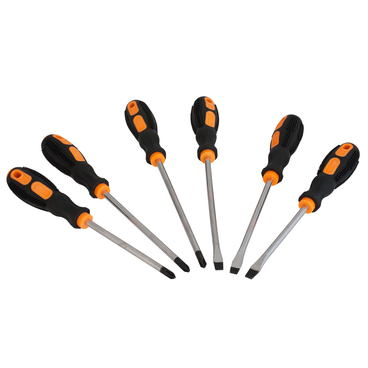 Sada šroubováků, 6 ks ASIST 33-1004 je univerzální výbava do každé domácnosti i dílny. Kombinace plochých a křížových šroubováků ve třech délkách pokryje nejčastější úkony od montáže nábytku přes hobby projekty až po drobné opravy spotřebičů. Precizně tvarované hroty zajišťují jistý záběr,...