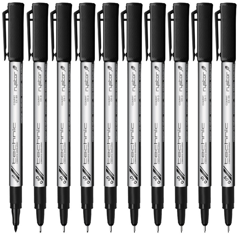 Cienkopisy w etui eko kpl. 9 szt.+ Brush czarne, Rystor