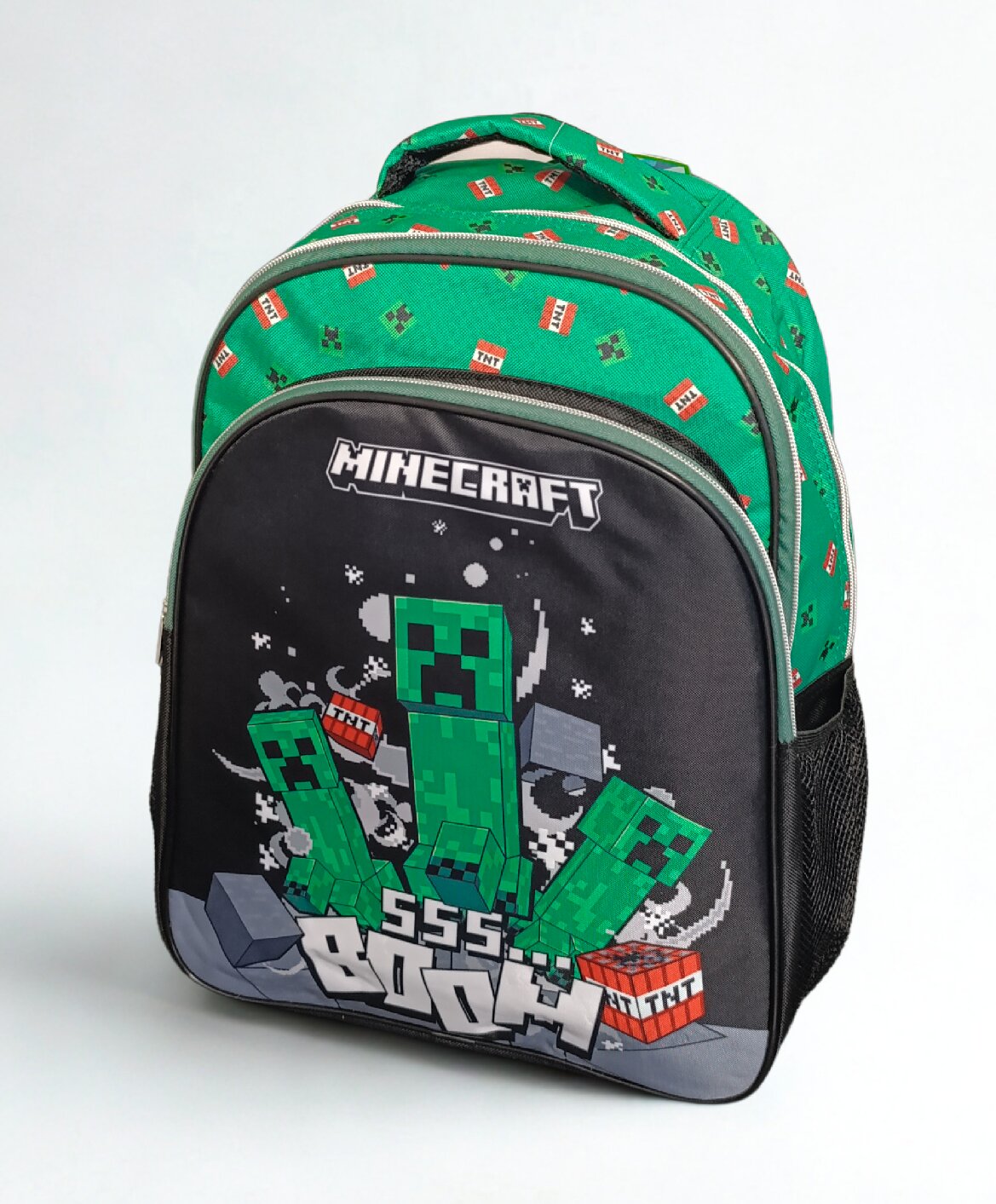 Školní batoh s oblíbeným hrdinou Creeperem z videohry Minecraft. Na přední straně se nachází obrázek Creepera, látka a popruhy jsou zdobené celopotiskem. Batoh má tři hlavní komory na zip, kam se vejdou všechny potřebné věci. Na bocích jsou umístěné sítované kapsy pro uložení láhve s pitím. Na...
