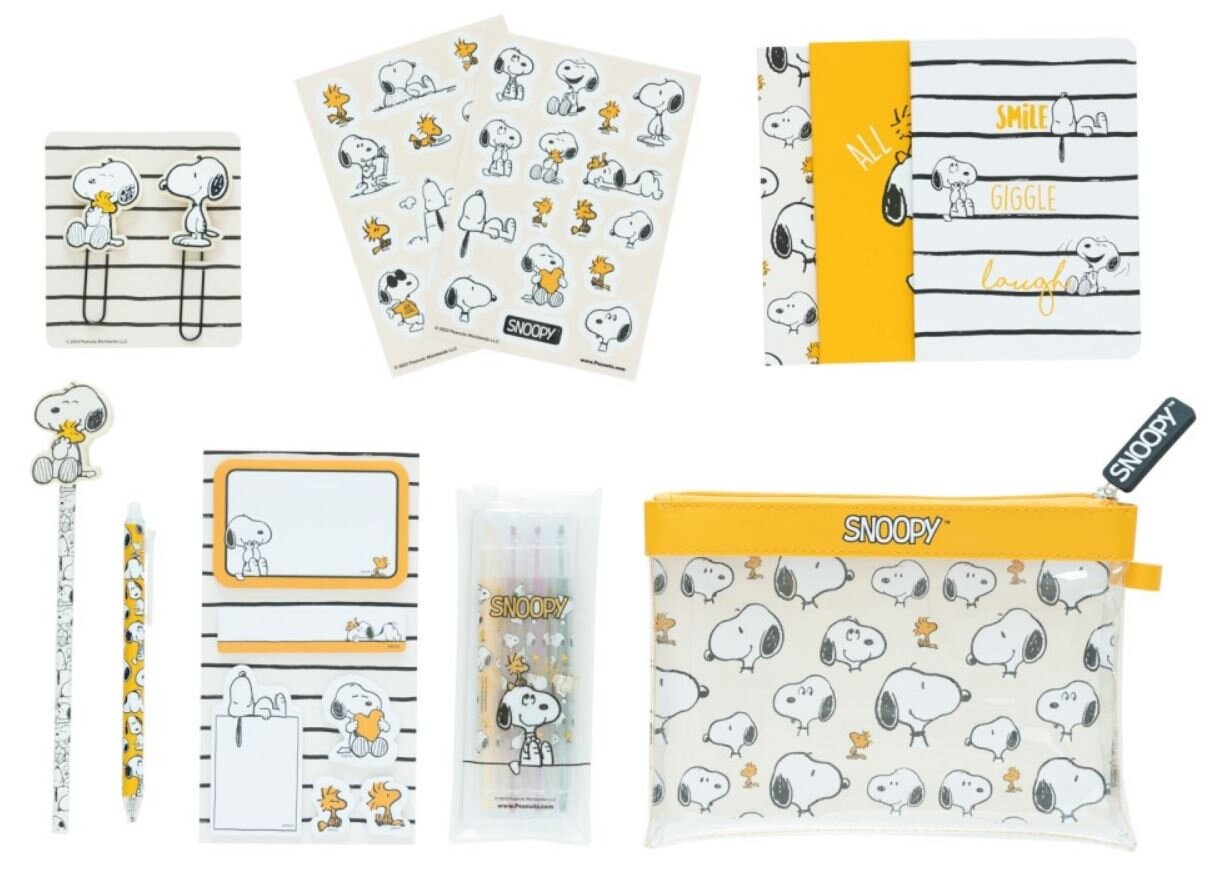 Set 7 školních pomůcek Snoopy: Úsměv (23 x 16 x 4 cm)