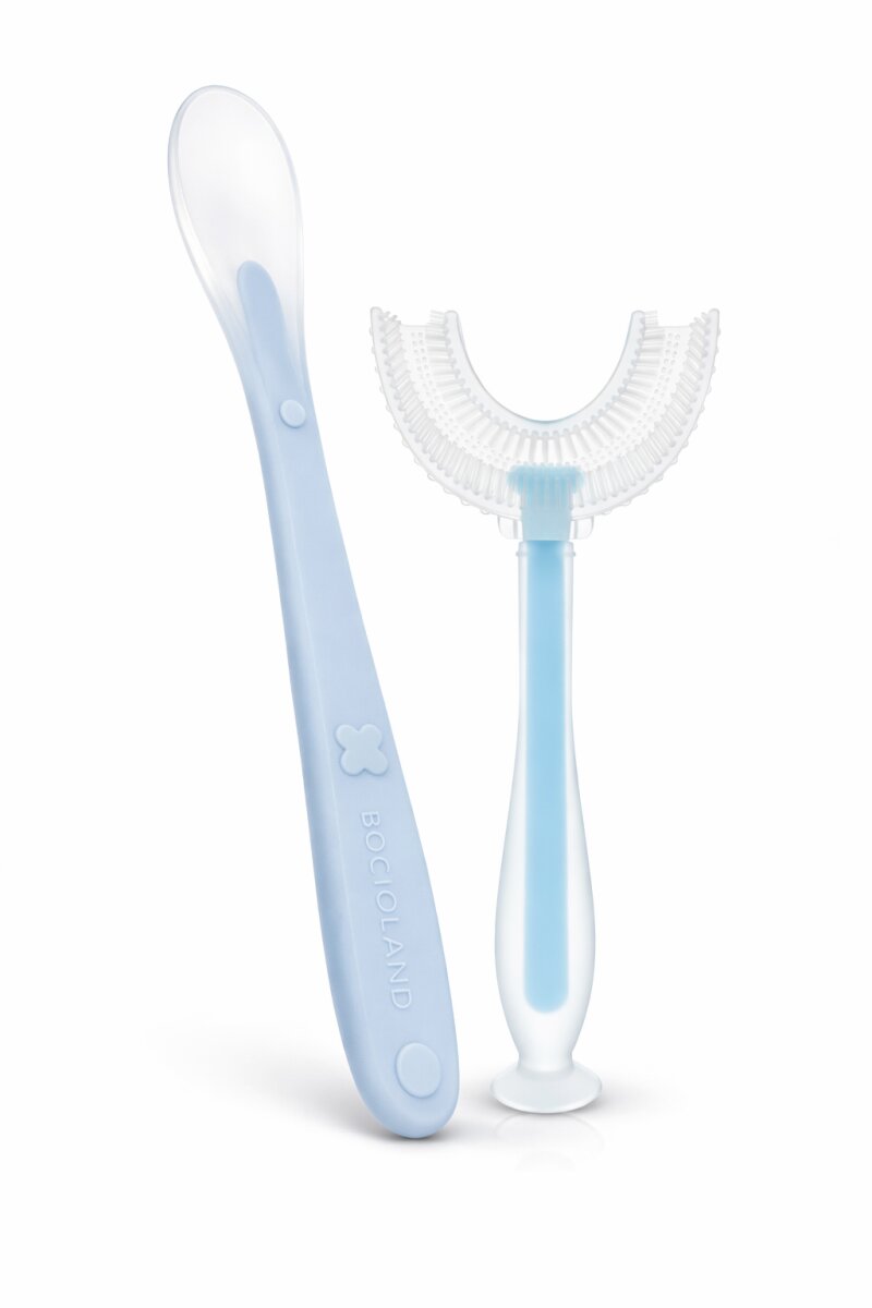 Sada: silikonová lžička + silikonový kartáček ve tvaru U pro děti – výhodná sada. Praktická výhodná sada pro miminka a malé děti, která usnadňuje každodenní krmení i péči o dětské zoubky. Spojuje silikonovou lžičku na první příkrmy (6m+) a silikonový kartáček ve tvaru U, navržený tak, aby děti...