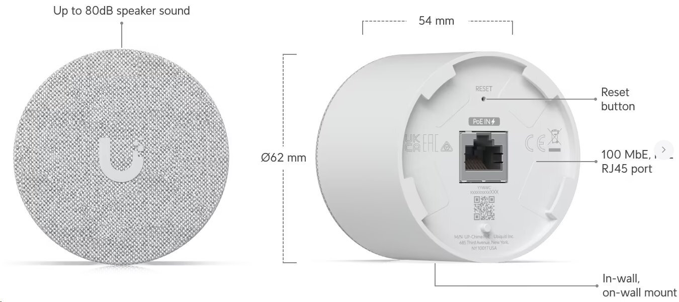 MechanicalDimensions Device: O62 x 54 mm (O2.5 x 2.1")In-wall mount: O89 x 63.1 mm (O3.5 x 2.5")On-wall Mount: O62 x 20.2 mm (O2.5 x 0.8")Weight Device: 158 g (5.6 oz)In-wall...