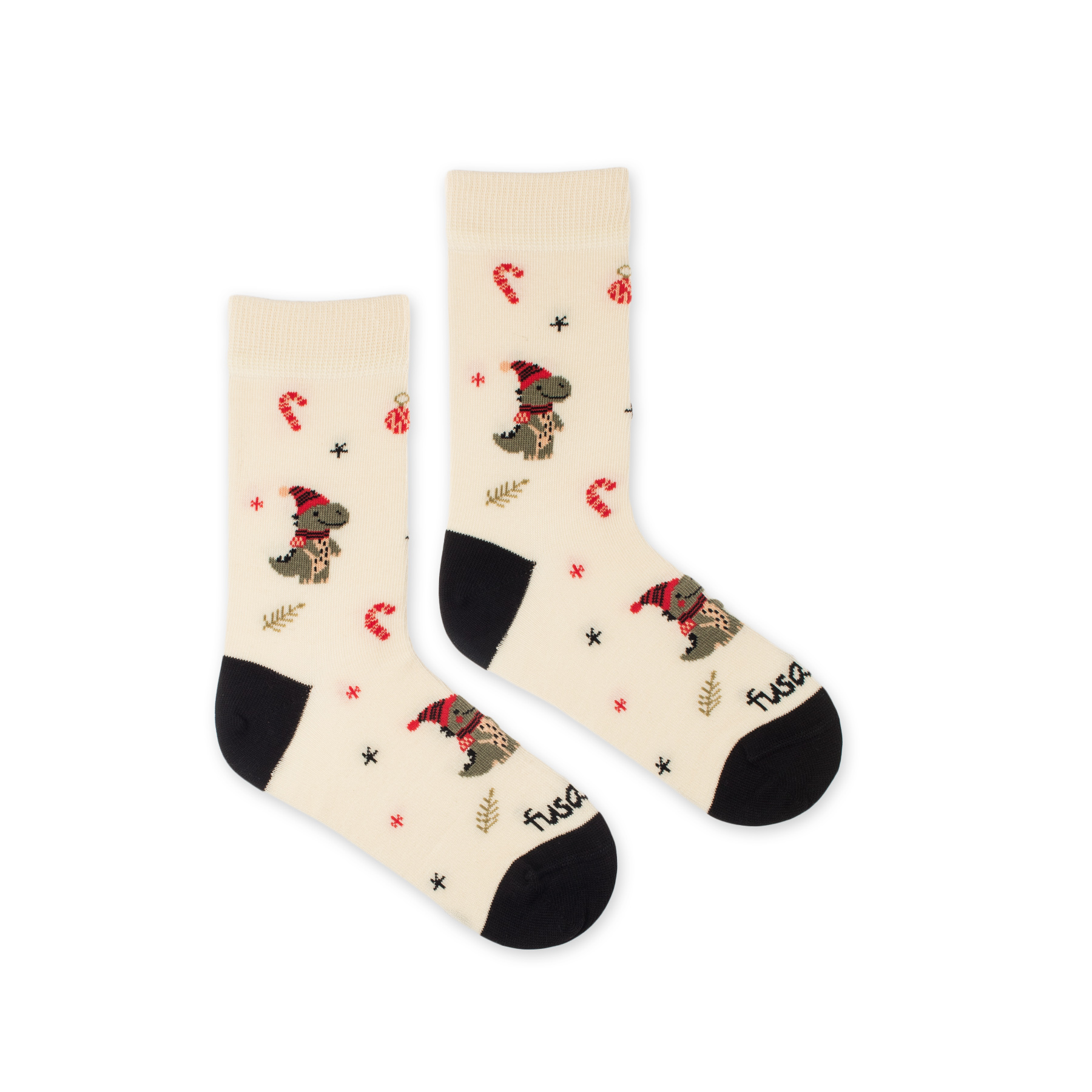 Dětské ponožky Dinosaurus vánoční Béžové XS (19-22)