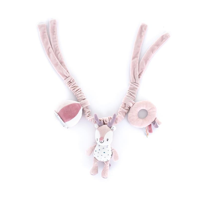 Veselá plyšová závěsná hračka, který zpříjemní malým cestovatelům pobyt v autosedačce, postýlce či kočárku. Nacházejí se na ní 3 krásné hračky.