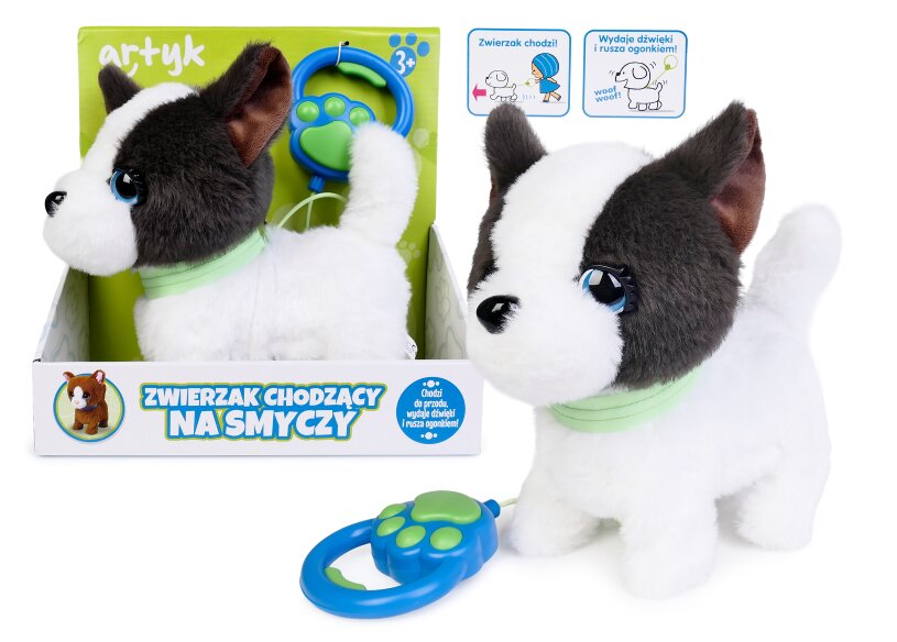 ARTYK 185595 Piesek chodzący na smyczy biało-czarny