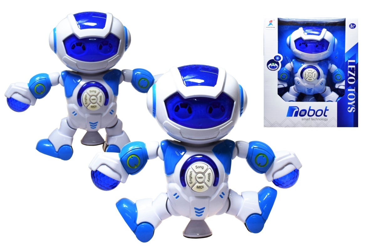 Spestri si deň hravou formou učenia angličtiny. Tancujúci robot po zapnutí tancuje, svietia mu očká, z vrchu na hlavičke mu premieta projekcia oblohu a ruky svetelné efekty. Na brušku má robot ovládanie na prehrávanie pesničiek - SONG, rozprávanie príbehu - STORY a výučba angličtiny - ENGLISH....