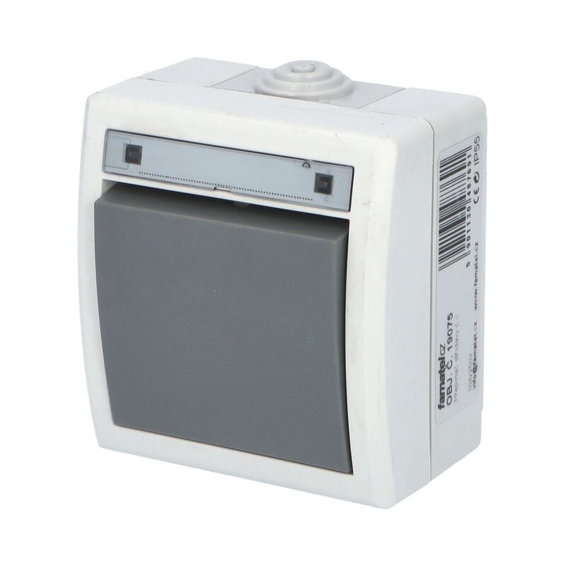 ATLAS 19075 IP55 Přepínač střídavý č.6, na povrch, šedý.Spínače a zásuvky ve vyšším krytí ATLAS IP55 s gumovou průchodkou (pro kabely do průměru 13,5 mm a trubky do 16 mm) jsou speciálně navrženy do prostředí se zvýšeným výskytem vlhkosti a prachu. Provedení v šedé barvě RAL 7035 a ovládacím...