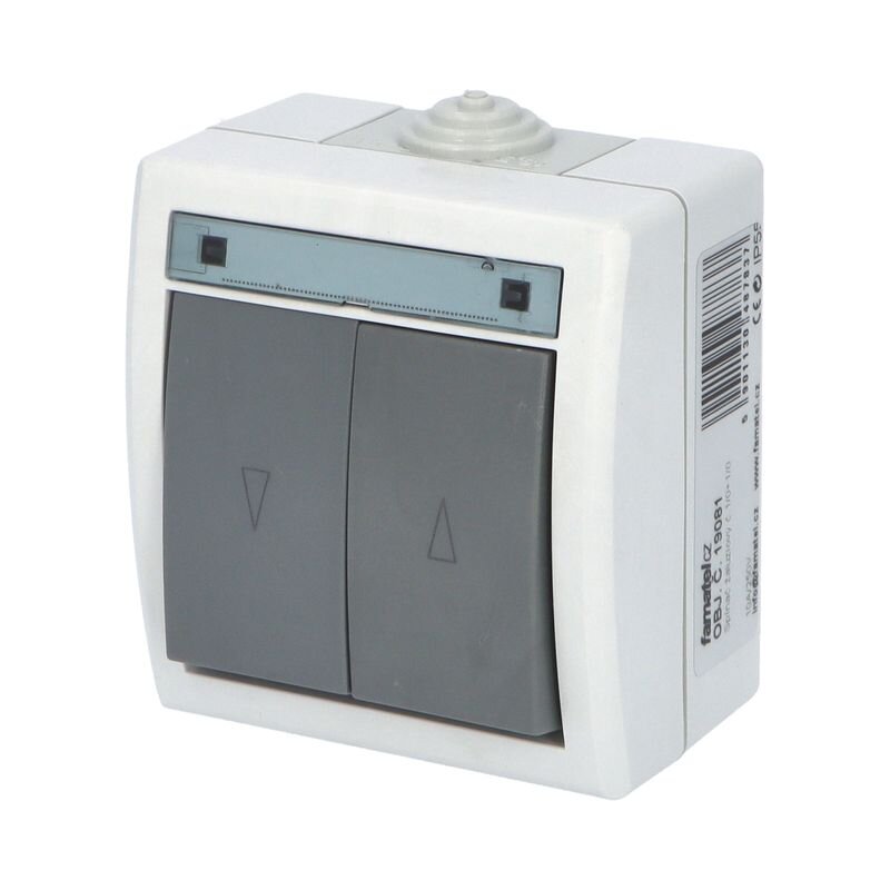 ATLAS 19081 IP55 Spínač žaluziový č.1/0+1/0, na povrch, šedý.Spínače a zásuvky ve vyšším krytí ATLAS IP55 s gumovou průchodkou (pro kabely do průměru 13,5 mm a trubky do 16 mm) jsou speciálně navrženy do prostředí se zvýšeným výskytem vlhkosti a prachu. Provedení v šedé barvě RAL 7035 a ovládacím...