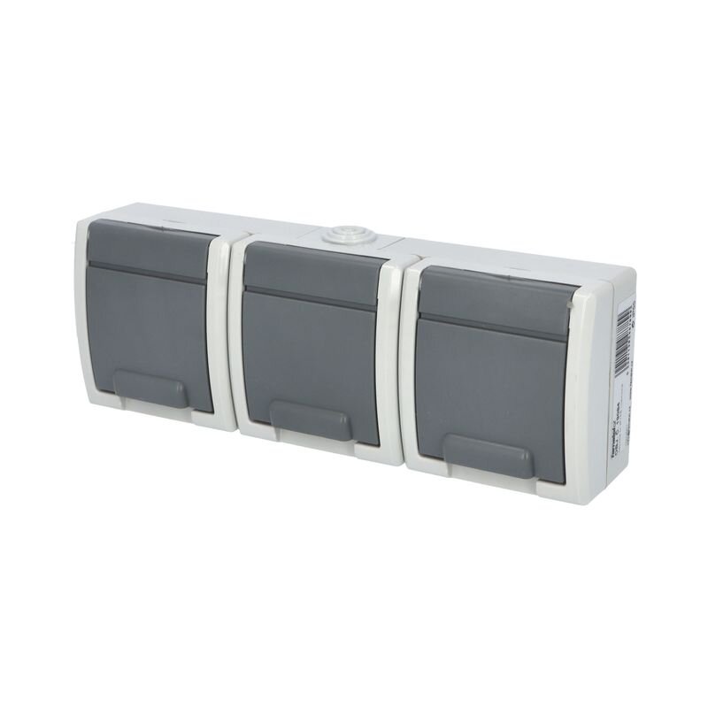 ATLAS IP55 Zásuvka 3x 2P+PE, 3-násobná vodorovná s ochr. kolíkem, šedá