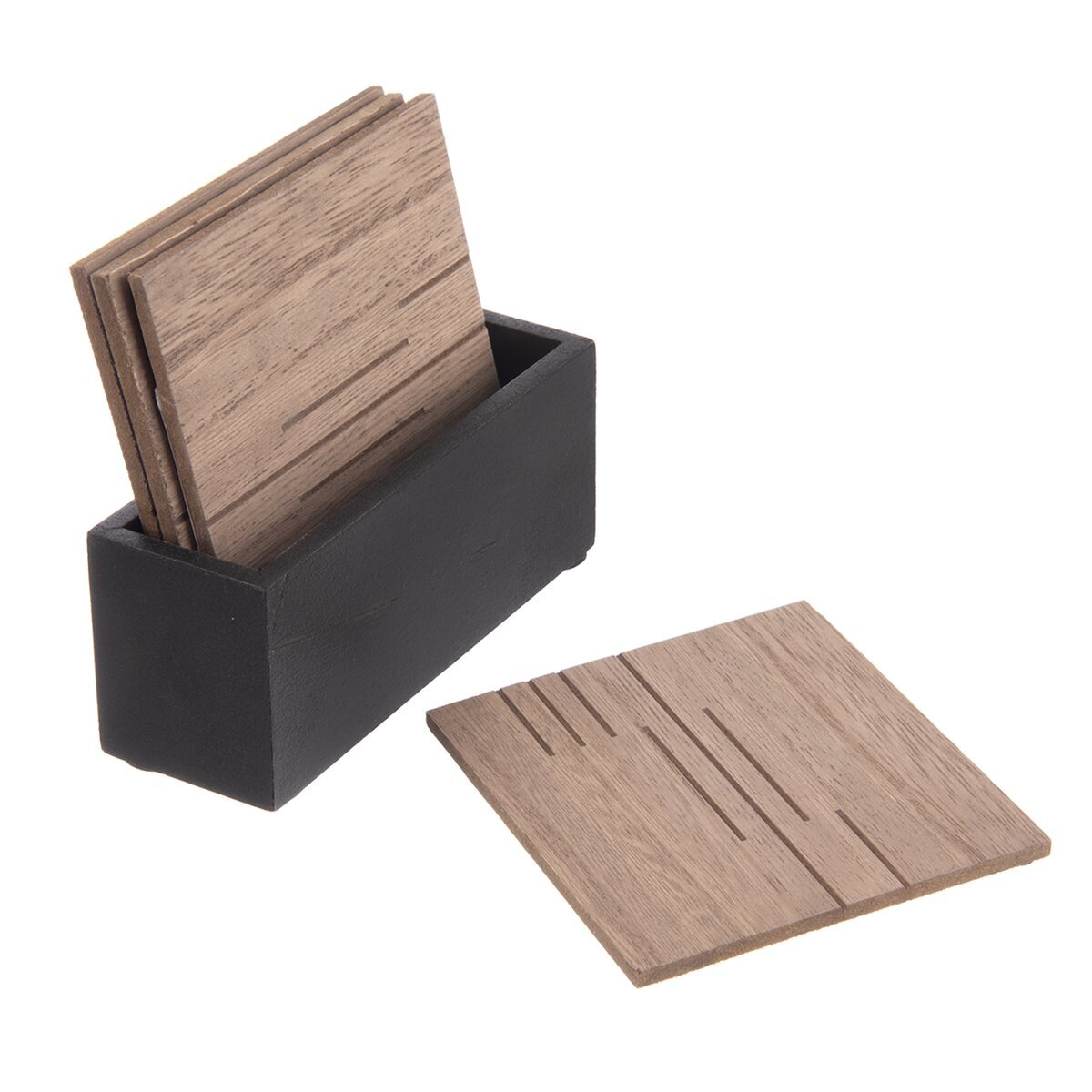 Podtácek dřevo+stojan LINE 10x10 cm 4 ks