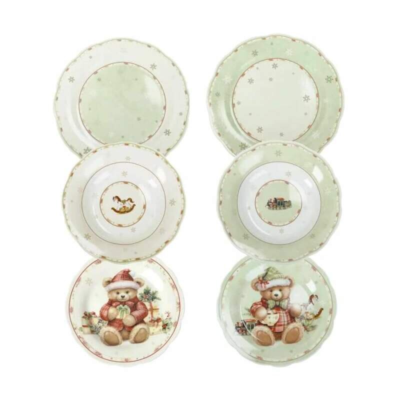 18 dilaná jídelní souprava: mazlení, medvídci, vánoční medvídek, sladcí, něžní, elegantní: roztomilí medvídci se hravě usmívají na rafinovaném porcelánu a zútulňují náš stůl.Nová kolekce Coccole od Brandani oslavuje Vánoce nejlaskavějším objetím: symboly tradice obohacují její ladné linie a...
