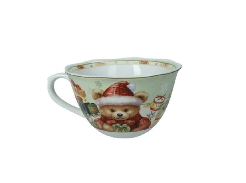 Velký snídaňový hrnek na kakao, čaj.... s medvídkem je jedinečný a slavnostní dekorativní předmět. Hrnek je vyrobena s velkou péčí a smyslem pro detail, medvídek je znázorněn roztomile a sympaticky.Design podnosu může zahrnovat vánoční barvy, jako je červená, zelená a zlatá, které dodávají...