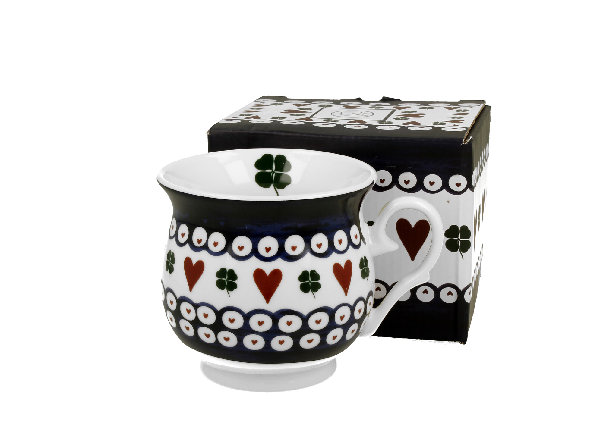 Kubek retro 500 ml INDIGO 3 wchodzący w skład serii ETNO, wykonany z porcelany New Bone China, która charakteryzuje się naturalnym kremowo-białym kolorem z delikatnym połyskiem oraz wyjątkową wytrzymałością i trwałością, zachowując lekkość i finezję. Linia zdobiona motywem malowanych serduszek i...