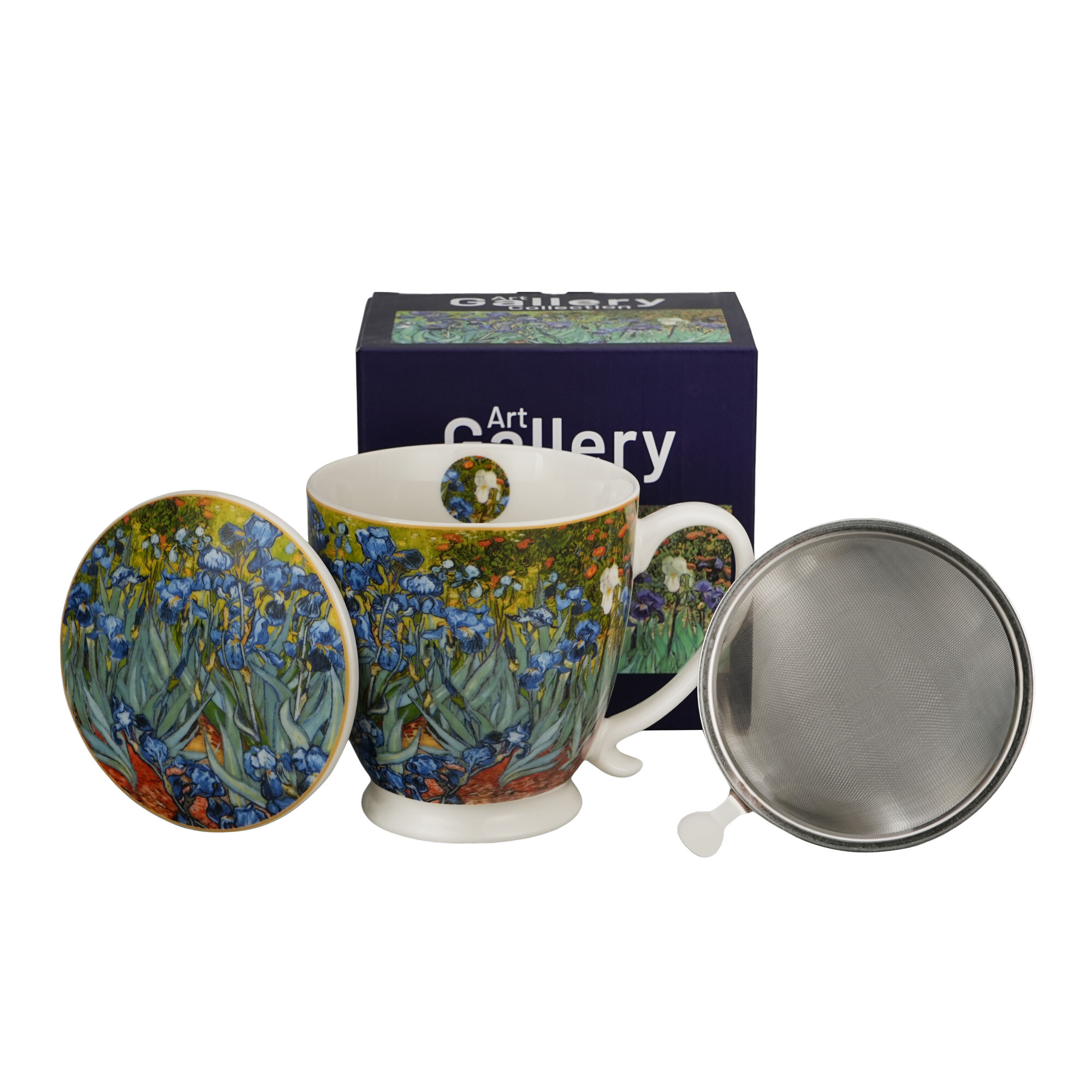 Kubek z zaparzaczem na stopce IRISES inspired by Van Gogh wchodzący w skład serii Art Gallery, wykonany z porcelany New Bone China, charakteryzującej się elegancką i naturalną kremowo - białą barwą z delikatnym połyskiem, a także wyjątkową wytrzymałością.Doskonały do przyrządzania ulubionych ziół...