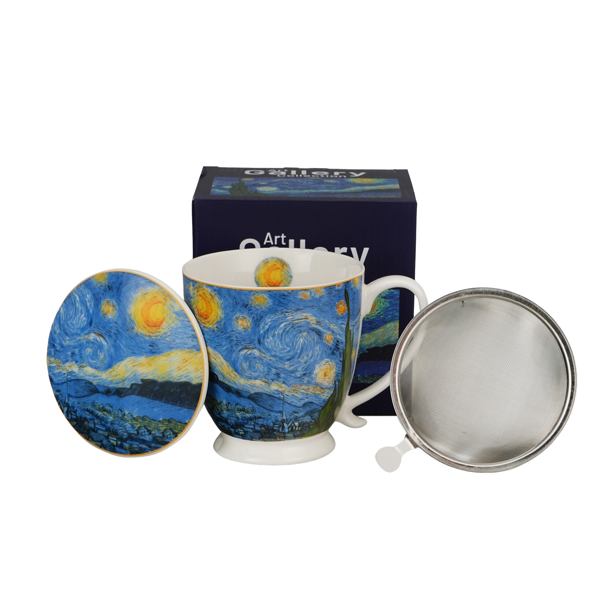Kubek z zaparzaczem na stopce STARRY NIGHT inspired by Van Gogh wchodzący w skład serii Art Gallery, wykonany z porcelany New Bone China, charakteryzującej się elegancką i naturalną kremowo - białą barwą z delikatnym połyskiem, a także wyjątkową wytrzymałością.Doskonały do przyrządzania...