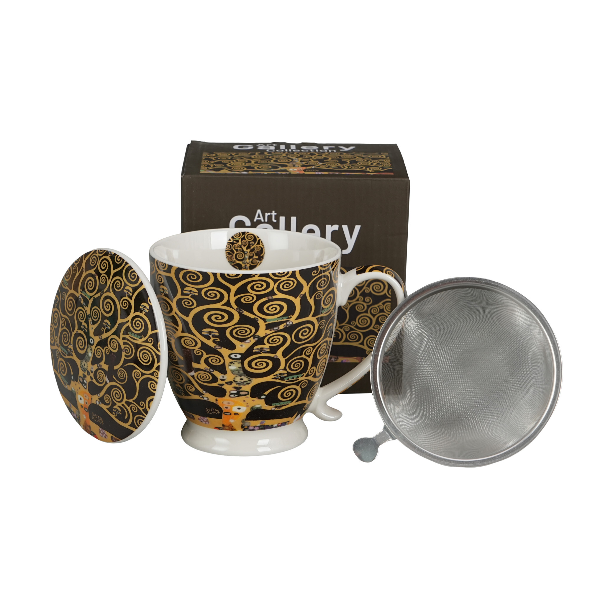 Kubek na stopce z zaparzaczem TREE OF LIFE BROWN inspired by Gustav Klimt wchodzący w skład serii Art Gallery, wykonany z porcelany New Bone China, charakteryzującej się elegancką i naturalną kremowo - białą barwą z delikatnym połyskiem, a także wyjątkową wytrzymałością.Doskonały do przyrządzania...