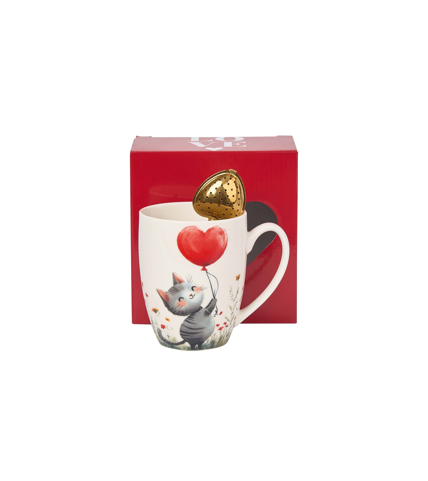 Kubek classic z zaparzaczem "serce" KOT Z BALONEM