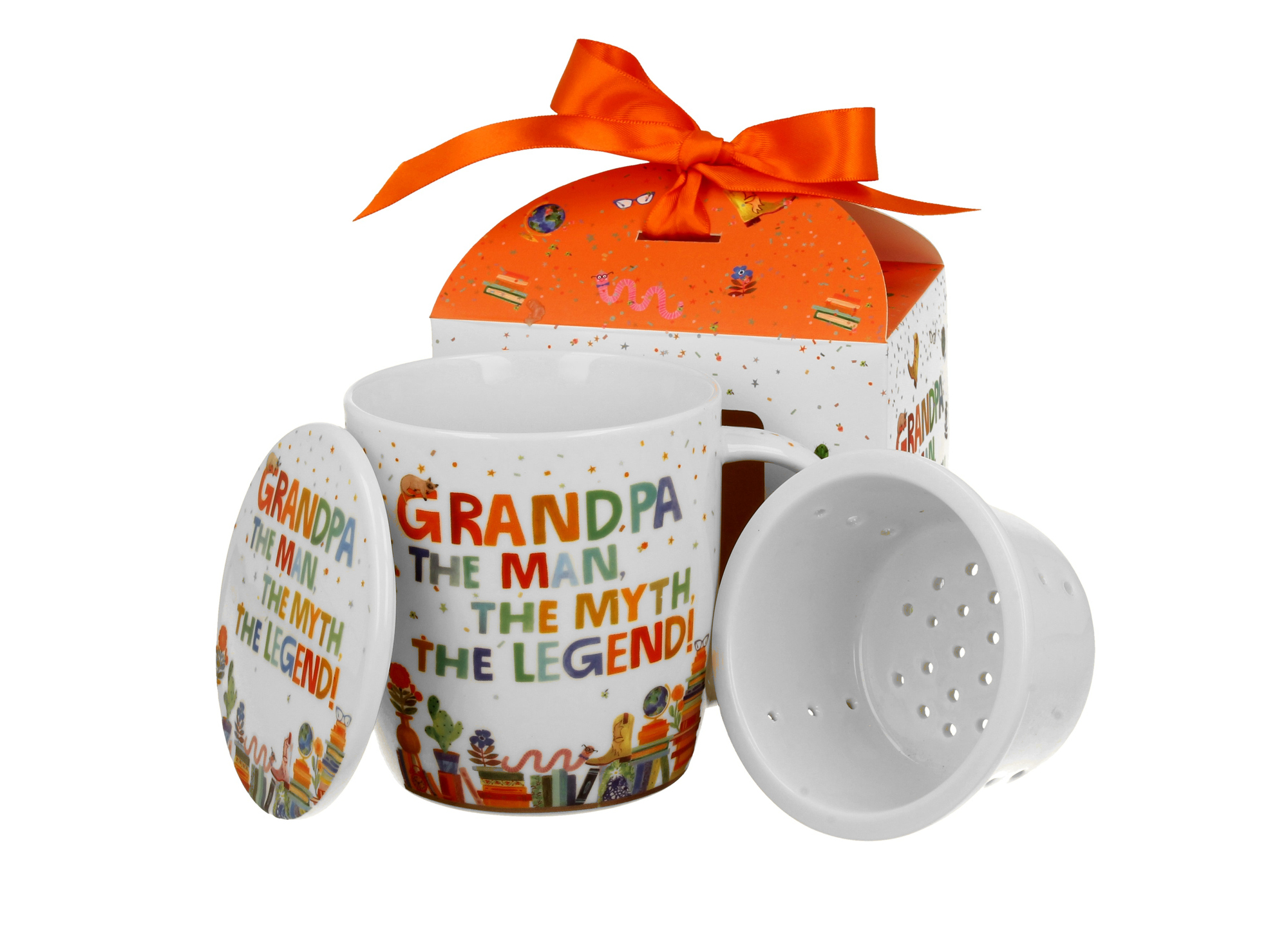 Kubek okazjonalny z zaparzaczem "GRANDPA" w pudełku z kokardą