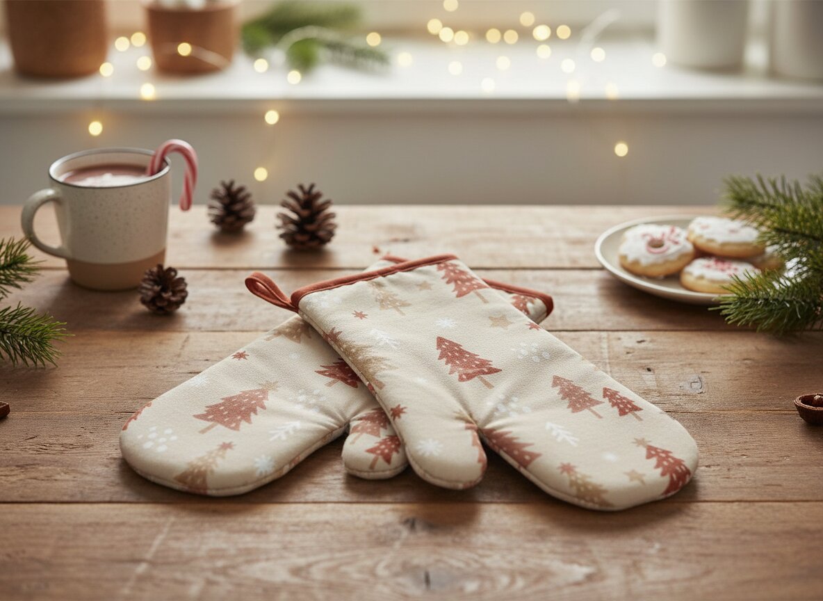 Vánoční kuchyňské rukavice chňapky FESTIVE XMAS béžová 18x30 cm 100% bavlna