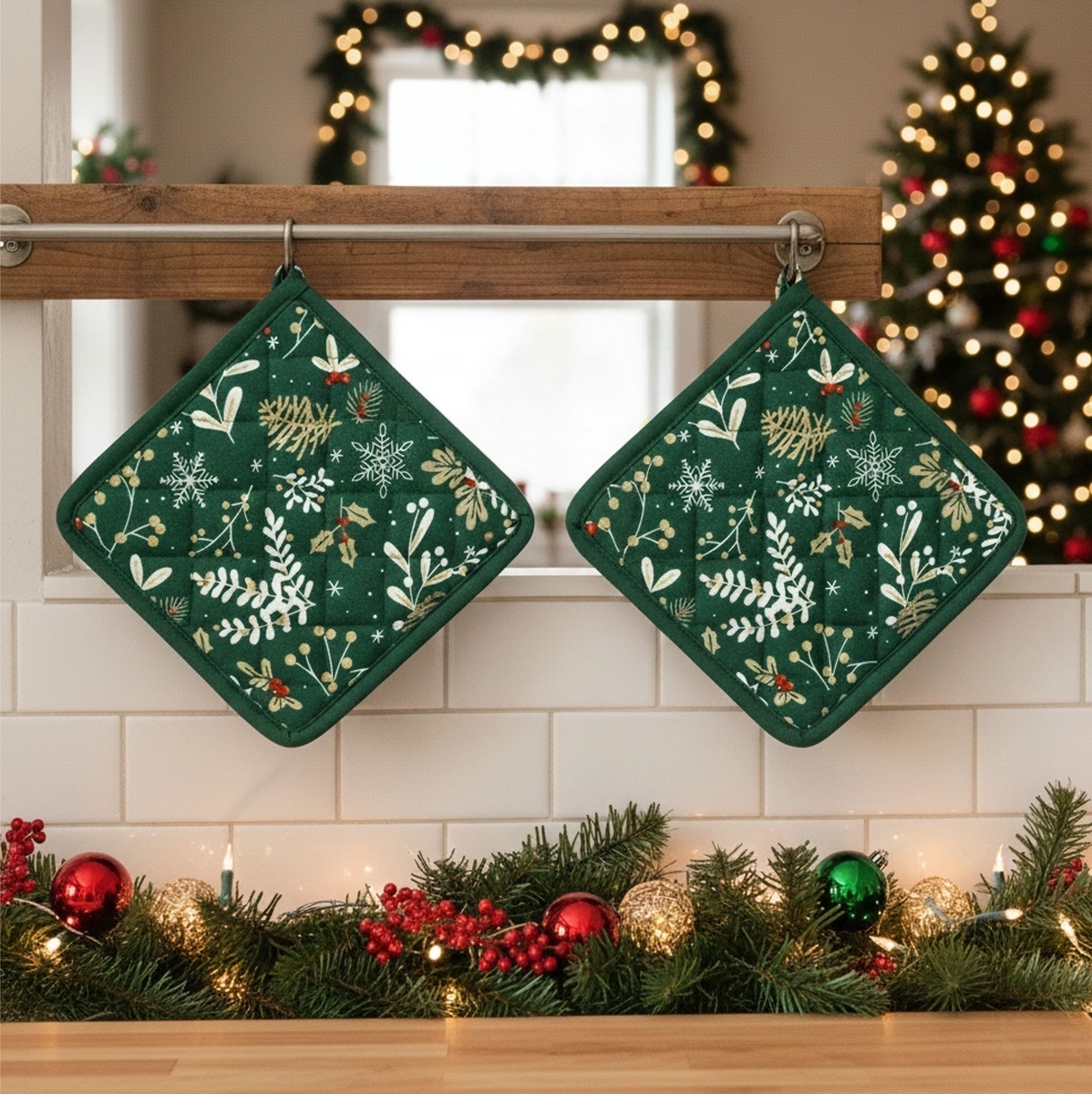 Užijte si kombinaci kuchyňského doplňku a vánoční elegance s touto univerzální podložkou. Je to praktický pomocník 3 v 1, který se stane nepostradatelnou součástí vaší kuchyně. Využijte ji jako spolehlivou podložku pod horké hrnce, pekáče či čajové džbány, a ochraňte tak svou kuchyňskou linku...
