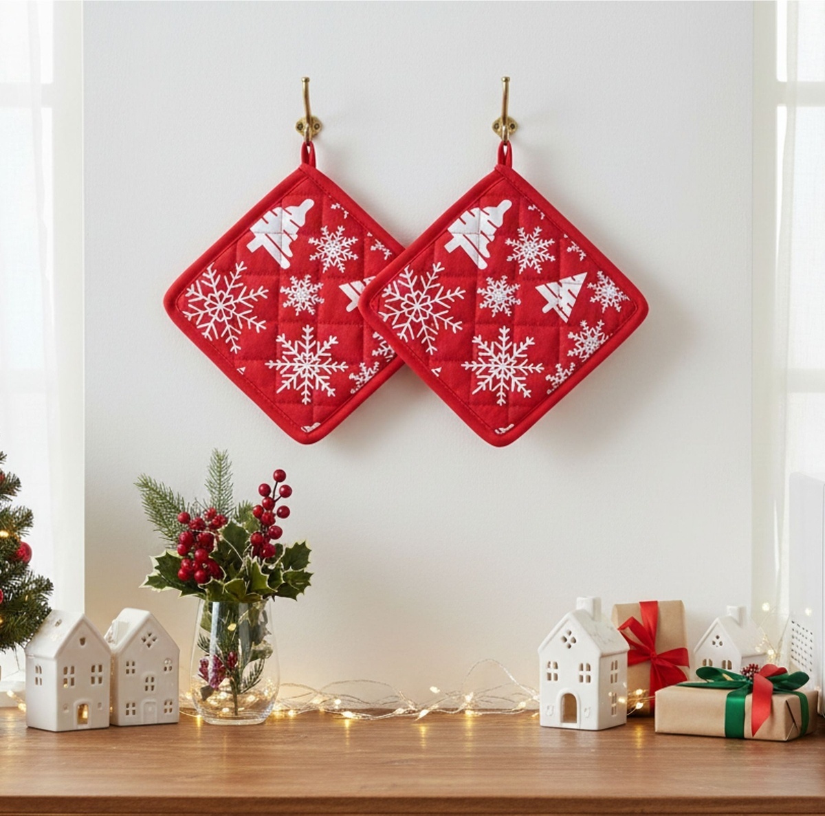 Užijte si kombinaci kuchyňského doplňku a vánoční elegance s touto univerzální podložkou. Je to praktický pomocník 3 v 1, který se stane nepostradatelnou součástí vaší kuchyně. Využijte ji jako spolehlivou podložku pod horké hrnce, pekáče či čajové džbány, a ochraňte tak svou kuchyňskou linku...