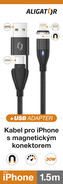 Datový kabel ALIGATOR MAGNETIC 3A 30W, USB-C+USB/Lightning 1,5m