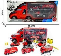 Cieżarówka transportowa straży pożarnej z autami