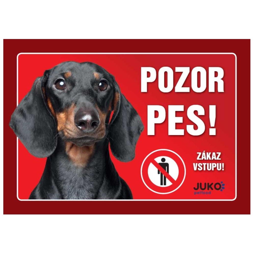 Bezpečnostní plastová cedulka tabulka Pozor Pes.Pro venkovní použití - ošetřeno UV laminací pro zajištění stálobarevnosti.Plemeno: Jezevčík hladkosrstý černýVelikost: 210 x 147 x 1 mmMateriál: plast, tl. 1 mmJudikát: v případě, že někdo vejde bez svolení majitele na takto označený pozemek, nenese... weiter lesen