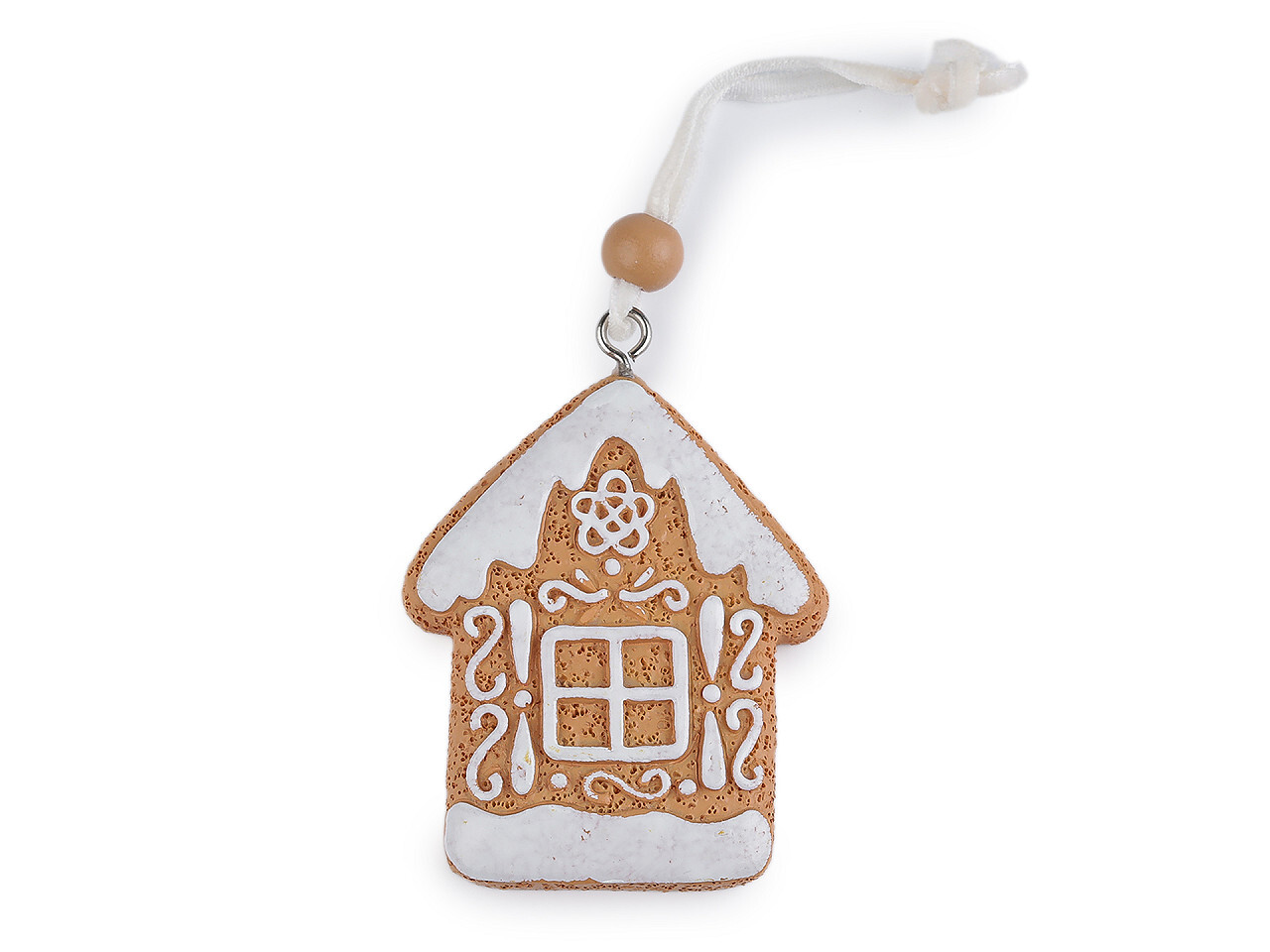 Vánoční perníčky k zavěšení - 1 ks - 2 přírodní stř. domeček